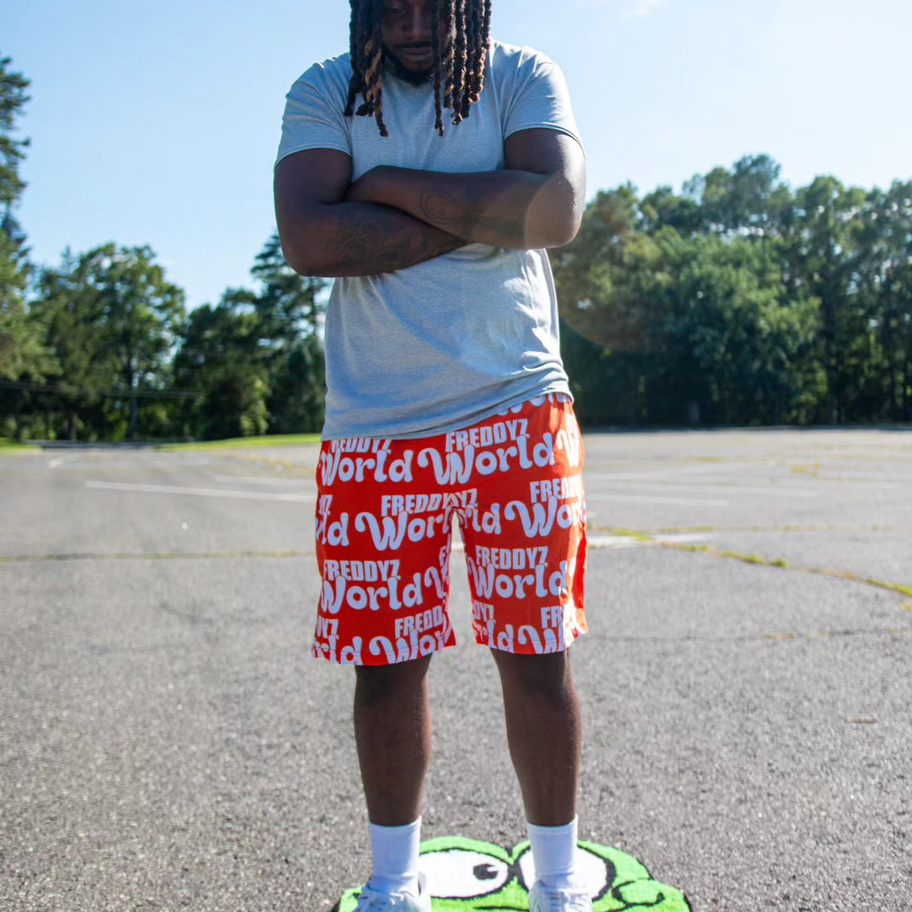 Freddyz World All Over Print Orange Short's, These shorts are lightweight, breathable, adjustable drawstring and comfortable.